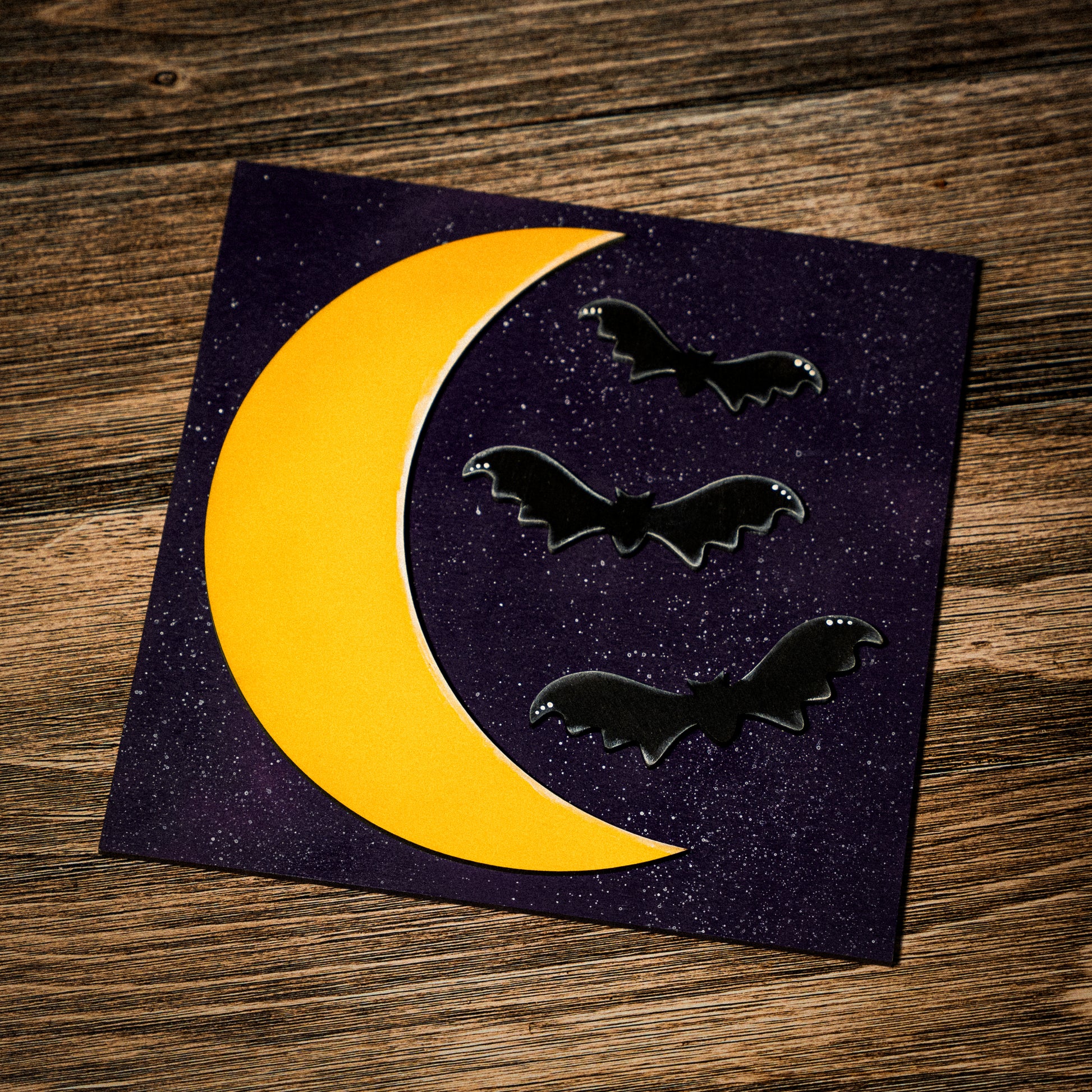 Spooky and serene, this moonlit tile features a glowing crescent moon and a trio of flying bats. Handmade and sealed to last, it’s the perfect moody accent to round out your Halloween collection.