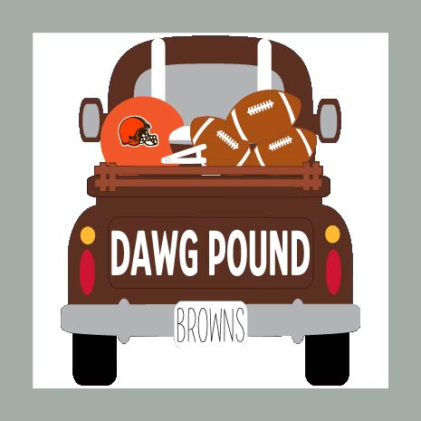 Show your Dawg Pound pride in farmhouse style. Our Cleveland Truck Tile features a vintage red pickup loaded with footballs, a helmet, and your team’s name loud and proud across the tailgate.