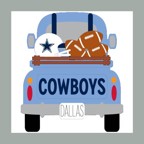 Show your Cowboy pride in farmhouse style. Our Dallas Truck Tile features a vintage red pickup loaded with footballs, a helmet, and your team’s name loud and proud across the tailgate.