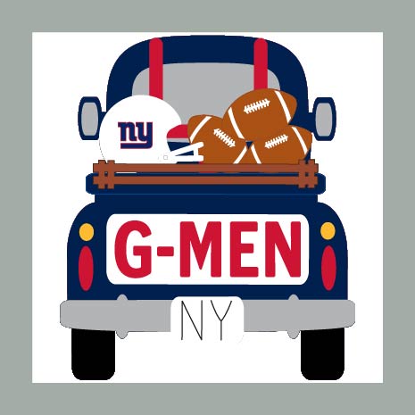 Show your New York pride in farmhouse style. Our Giants Truck Tile features a vintage red pickup loaded with footballs, a helmet, and your team’s name loud and proud across the tailgate.