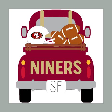 Show your Niner pride in farmhouse style. Our San Fransisco Truck Tile features a vintage red pickup loaded with footballs, a helmet, and your team’s name loud and proud across the tailgate.